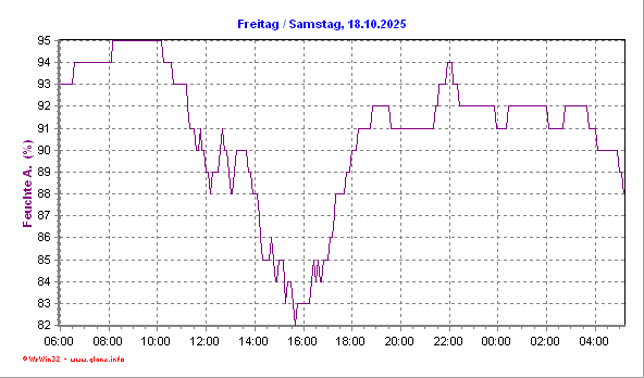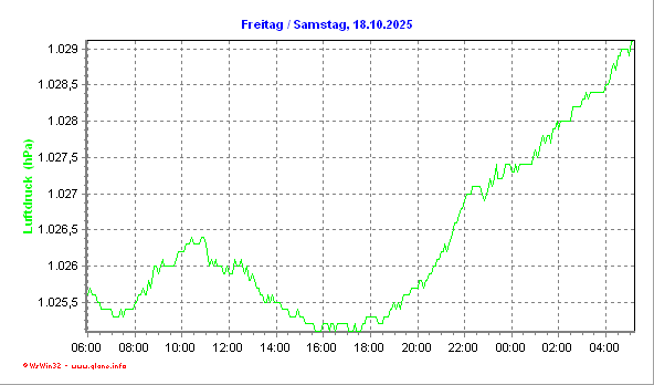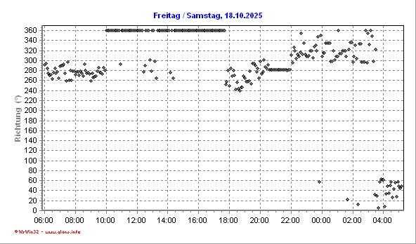 Die Daten der letzten 24 Stunden. Aufgezeichnet mit einer WS-2800 IT und dem Programm WsWin32